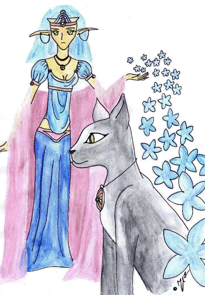 Mein 2. versuch mit den Aquarellstiften. naja, ich find es ganz okay, nur der rote umhang is scheiße geworden ^^° Eigentlich wollt ich was ägyptisches malen, deshalb die Katze. Hab mich aber umentschieden und wollt das Katzentier nich wegmachen ^^°