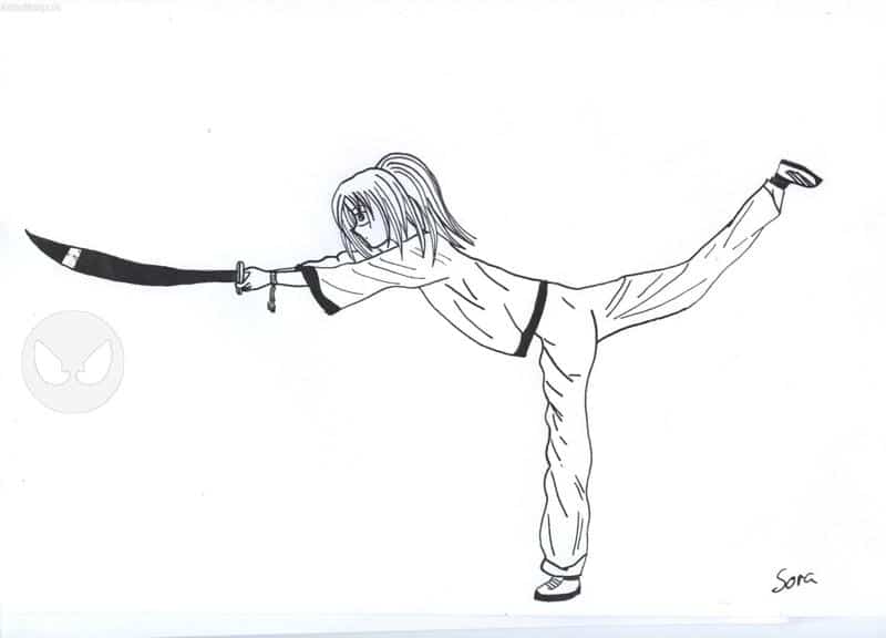 Des Bildchen hab ich mehr oda weniger abgemalt. Mene Freundin hat mir vor kurzem nen Zeitungsausschnitt mit 3 Bildern über Kung-Fu Mädchen gezeigt und hat gemeint, die muss ich ihr abmalen. Das *aufdesBilddeut* is draus geworden und ich finds gar net soooo schlecht^^. Nur n bisserle schlicht aba auf dem Orginalbild isses auch so und ich wollts net grosartig verändern *ausrede*. Die andern beiden Bilder sin noch net ganz fertig werd se aba auf jeden Fall auch noch hochladen.