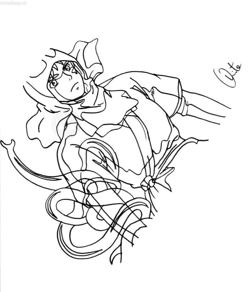 Auch dieses Bild habe ich mit meinem Lieblingsstift gezeichnet. Es zeigt Ashitaka, als er bei der Eisenhütte der Herrin Eboshi von dem Fluch Nagos ergriffen wird.