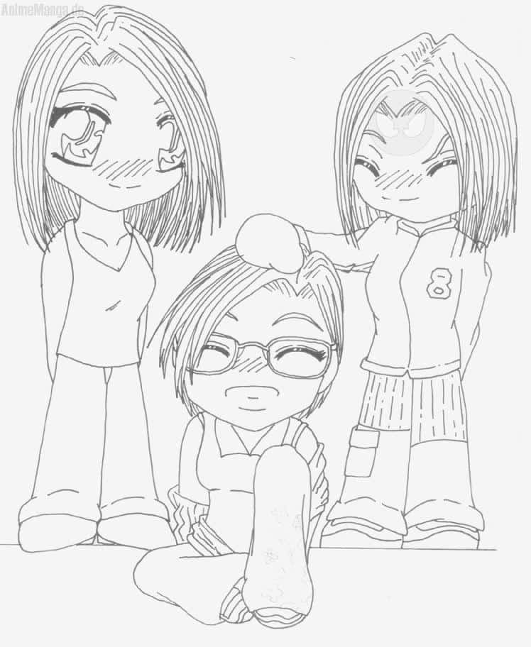 Das sollen ich und meine Schwestern sein als Chibis. Ich bin grad in der mitte und werde wie immer geärgert. Das kommt davon wenn man die jüngste ist (hat natürlich auch seine Vorteile).