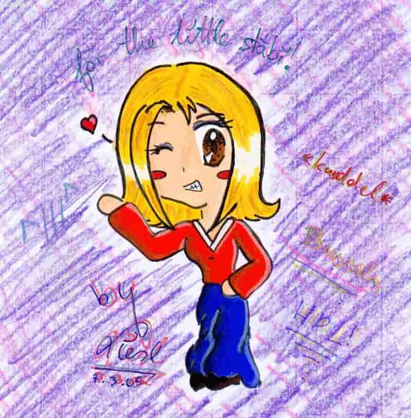 sry das der BG so bekackt is .. ich muss echt ma pastellkreiden kaufen und vl schablonen oda so ... dann kann ich probiern so wie´s yuni BG´s zu machen!! (die sehn soooo genial aus!! ^~^) .. jo sonst find ich des pic eh halbwegs in ordung ... [eine klassenkameradin vo mir hat´s heut in der schule gesehn und gesagt das voll sweet is und ich supa zeichnen kann!!! .. so behindert .. also bitte wenn ich gut zeichnen kann .. was können dann magu, sayo, seji, fenomena yuni, piepsi, stäbi, (sry dass ich da net alle reinschreib .. aba des wären so extrem viele!!!!!!!!) und alle andern die so genial zeichnen können dann?!?! hmm .. 10 mille bessa als ich !! ^^°