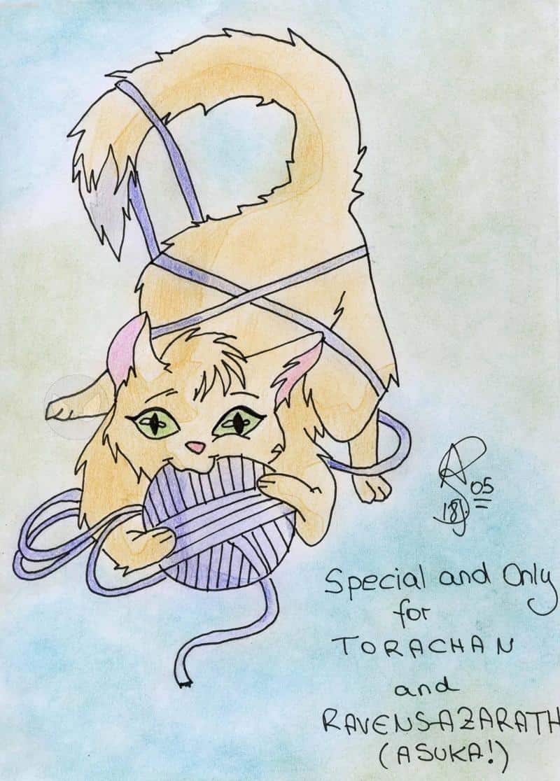 Mit ist im Moment ziemlich fade… also hab ich dir noch ne Katze gezeichnet, torachan… und dir, Asuka hab ich das Pic auch gewidmet, weil ich dachte, du magst Katzen gerne… (ich hoffe, ich liege da richtig… *smile*) Ach ja… das Motiv ist abgezeichnet… ich fand es so sweet… einfach zum knuddeln!!! *gg* Na dann… wie auch immer… lg Magic.