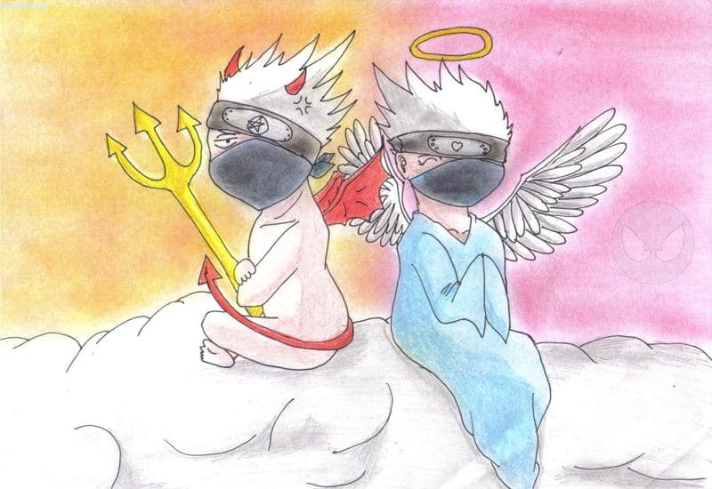 XDDDXDXDDD sorry,für das scheiß bild,ihr könnt mich ruhig umbringen^^".....der evil kakashi gefällt mir ja gar nicht...zumindest nicht das gesicht.beim good kakashi ist das viel besser und süßer.aber der hat unterschiedlich große flügel ^^".......