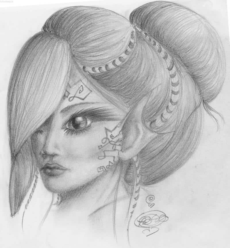 Wie man sieht is dat irgend so ne Außerirdische (guckst du auf Ohren, seltsame Kritzeleien im Gesicht, zu hoher Haaransatz (JA, der war beabsichtigt, die Frau hat absichtlich so ne hohe Stirn °_________O), Wimpern usw.)
