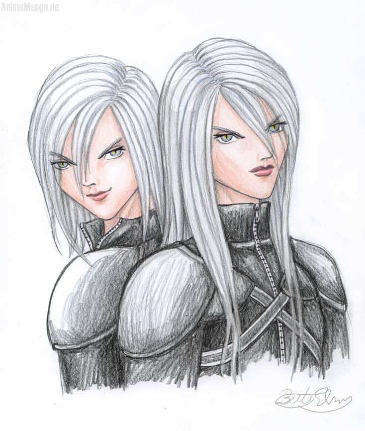 Das sollen Kadaju (Kadaj) und Yazuu (Yazoo) von "FF7: Advent Children" sein.