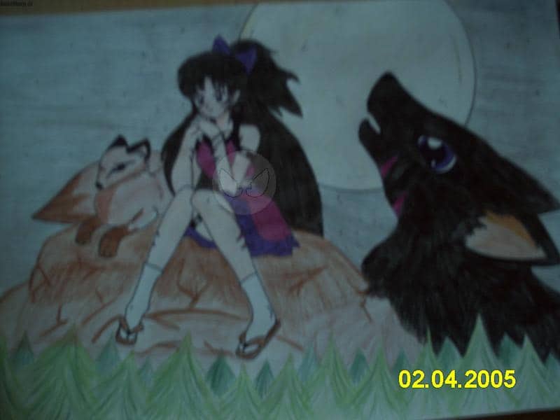 Das ist Maru (das Mädchen) links neben ihr sitzt Nala und rechts daneben ein Wolf