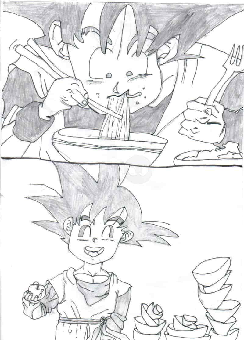 Hallo, dieses Bild zeigt das Son-Goku genau so'n vielfraß is wie früher. Ich finds lustig. freu mich über kommis ciao ^-^
