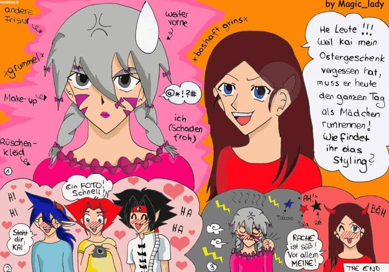 … Naja… was soll ich dazu sagen… hmmmm… dieses Pic hab ich schon zu Ostern gezeichnet… aber immer wieder verschmissen, weil es mir überhaupt nicht gefiel… ich habe radiert und gezeichnet und radiert und gezeichnet… dann mal coloriert… und dann kam das hier raus!!! Es gefällt mir immer noch nicht wirklich… aber egal… wie immer stehe ich zu meinen Pics und denk mir: „Aus Fehlern lernt man!!“ He…!! Ups… ich wiederspreche mir gerade… zuerst sag ich, ich steh zu meinem Pics, dann, dass man aus Fehlern lernt… na ja… that`s live, that`s me… nehmt das nicht so ernst, was ich verzapfe!!! *verlegen smile* Am Besten (finde ich halt mal) ist mir Rei gelungen… obwohl ich den normalerweise überhaupt nicht kann… na dann… wie auch immer… lg Magic.