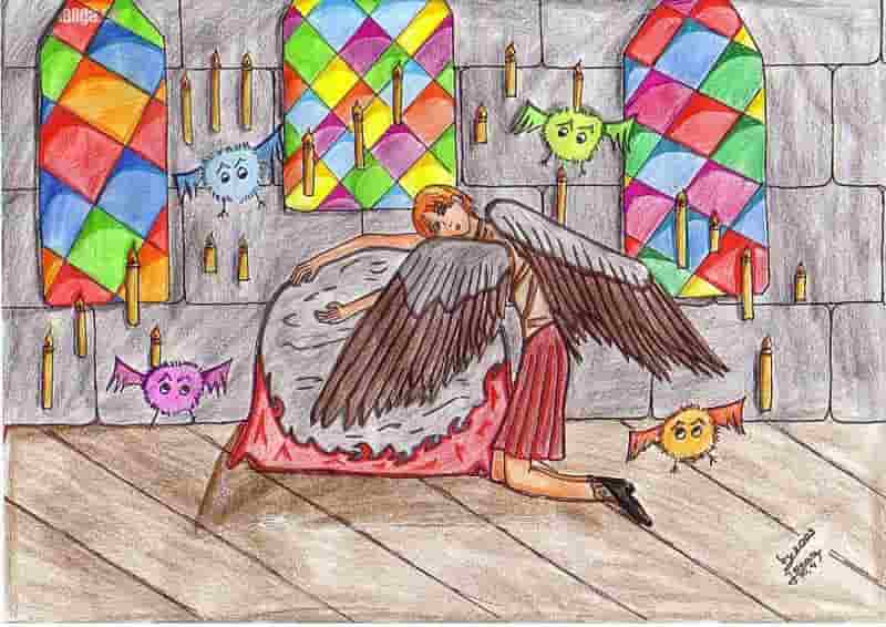 O.K zum Bild gibt es nicht viel zu sagen ich hoffe nur ihr könnt er kennen was es darstellen soll (ich weiß ja selber nicht genau was) die Tierchen drum herum hab ich in irgendeinem Fanart von euch mal gesehen, also wer sie wieder erkennt soll bitte net sauer sein, denn ich fand die soooooooo süß , da musste ich sie einfach malen :D! O.K und der BG soll das innere einer Kirche darstellen. ich hoffe ihr könnt es erkennen *g* !!!!!... Das war es auch schon wieder von mir, jetzt seit ihr dran ... es wär echt nett, wenn ich mal ein paar Kommentare von euch bekommen würde, das wäre mal so ein richtiger Energieschub *fg* widmung: an alle Kommi schreiber!!