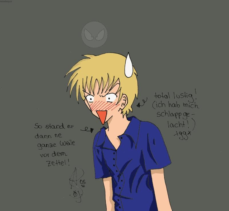 Ich hab dir ja versprochen, den Gesichtsausdruck meines Bruders zu zeichnen, als er den Zettel sah... und hier ist er!! *gg* lg Magic.