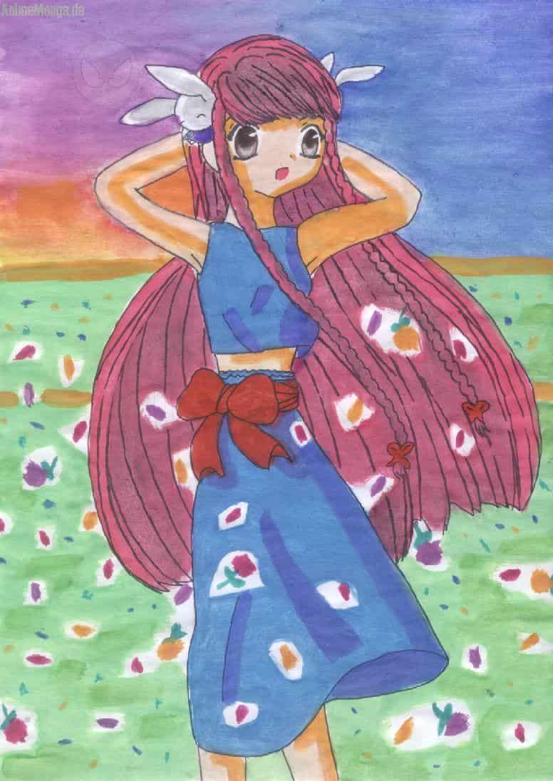 Tja!! Das ist Misha aus Pita Ten ( auch wenn's am Ende doch nicht so richtig nach ihr aussieht) Und auch die Colo is net besonders geworden. Über all andauernd über'n Rand drüber. Hab's zwar noch versucht auszubessern. Aber naja;-;