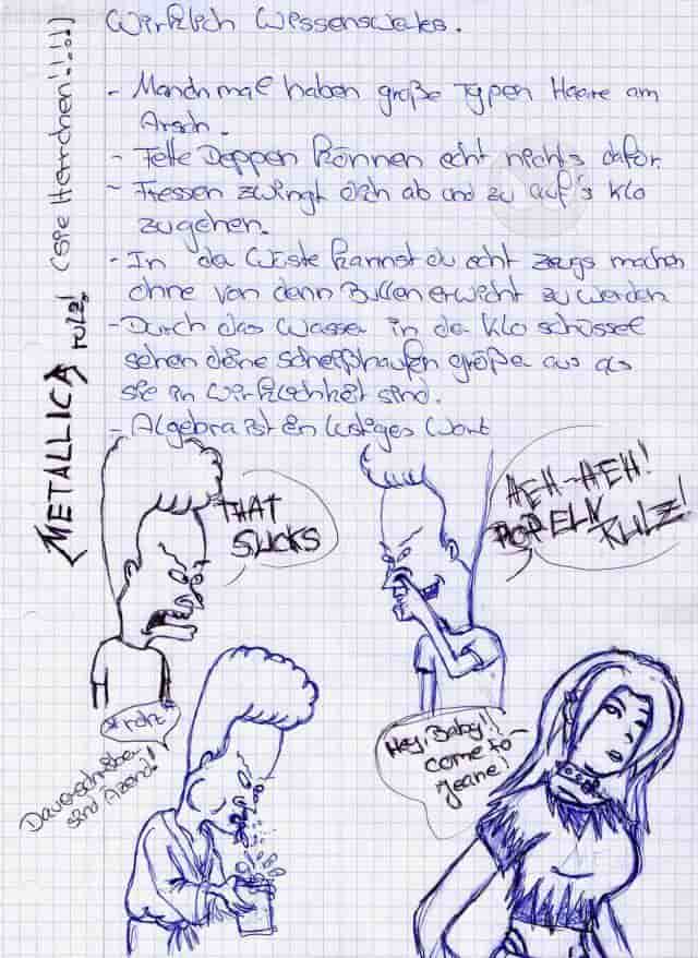 Vielleicht habt ihrs gemerkt: Ich liebe es Besvis Hackfresse zu zeichnen. XD *rofl* Ja, ja, Popeln rult. ^^°°° Ich hab da versucht seine Schrift nachzumachen aber.... so ganz is es mir nicht gelungen... XD Außerdem ist mir der Dauerschreiber (eh... sorry, Kugelschreiber) all gegangen... so das ich nen neuen Suchen musste.. Na ja, wie auch immer... ich erwarte dazu eigentlich keine Kommentare... Sondern will nur wissen Ob ich verrückt oder Geisteskrank bin....