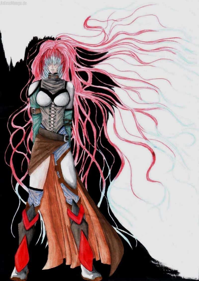 schließlich hab ich es noch coloriert, wobe mir besonders der "lederrock" und der durchsichtige stoff auf dem rumpf, an den armen und den beinen gefällt.die haare sind so naja. ich muss den hintergrund an den stellen nochmals schwärzen und dabei die verwackelten linien übermalen....... trotz der ganzen fehler hat das bild viele fans, was mich sehr freut. hoffentlich gefällt es auch auch!^^
