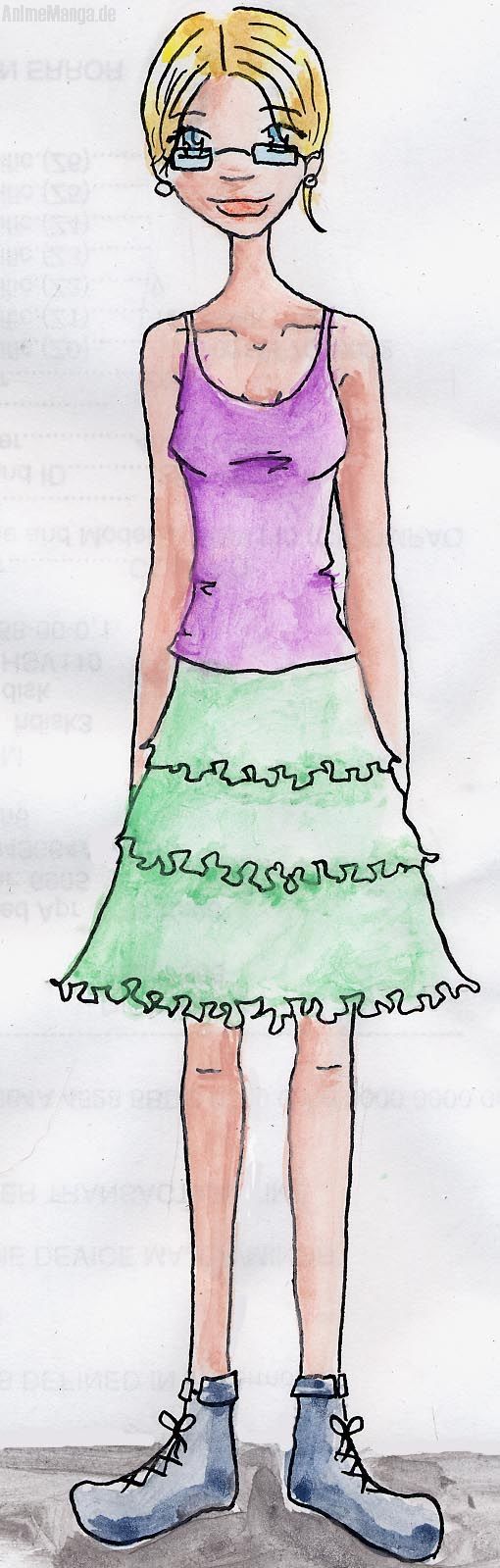 Das - ja das, dieses komische, dürre, schrecklich gecolorte Teil - soll die Frau meines Bruders darstellen oO Eigentlich war ich mit den Ols ganz zufrieden, ich habe ausnahmsweise mal NICHT milliarden von linien gemacht, sondern kaum welche benutz. Okay, also war ich darauf ganz stolz, aber hey, mit der Colo hab ich alles versaut, das kommt mir vor wie ein Fake - Aquarell, es sind Wasserfarben -.- Und der Pinsel hat irgendwie gestreikt und hat die ganze Zeit so komisch abgestanden, also konnt ich nicht gescheit colorn und ya - das misslungene Ergebnis, la voila da oben -.-