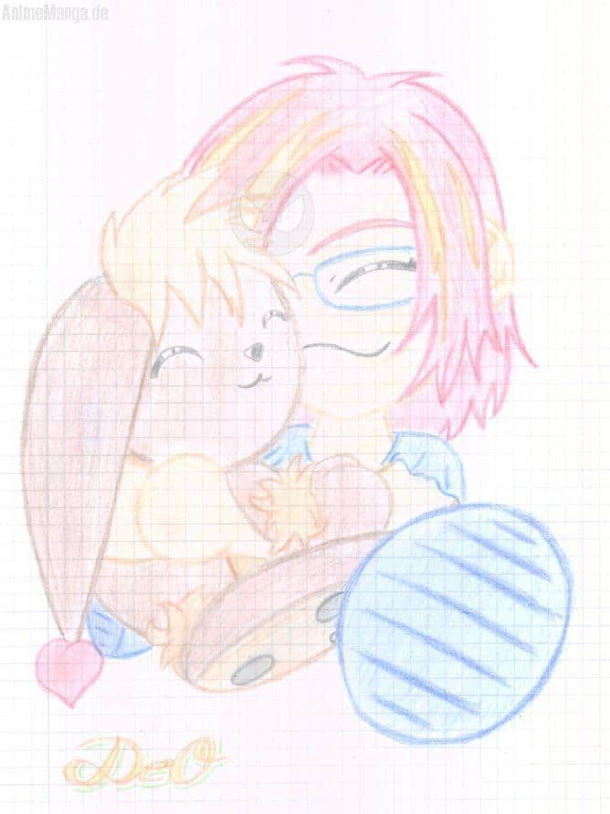 Tja der Hase is eigentlich schon älter. Den hab ich mir ausgedacht als es mit meiner Manga und Animesucht anfing (also wirklich schon ein weilchen her) Das neben dem Hasen bin ich halt als Chibifigur*gg
