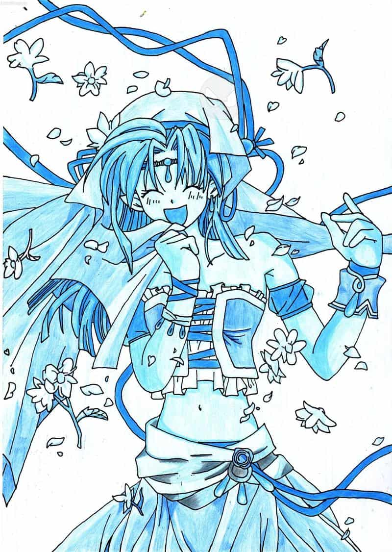 So, das hab ich gemalt, als ich 39° Fieber hatte. Wenn ihr etwas über die Entstehung wissen wollt (z.B. warum ich es noch einmal mit anderen Farben ausgestellt hab) lest euch den Kommi zu dem Bild "Kyoko" durch^^