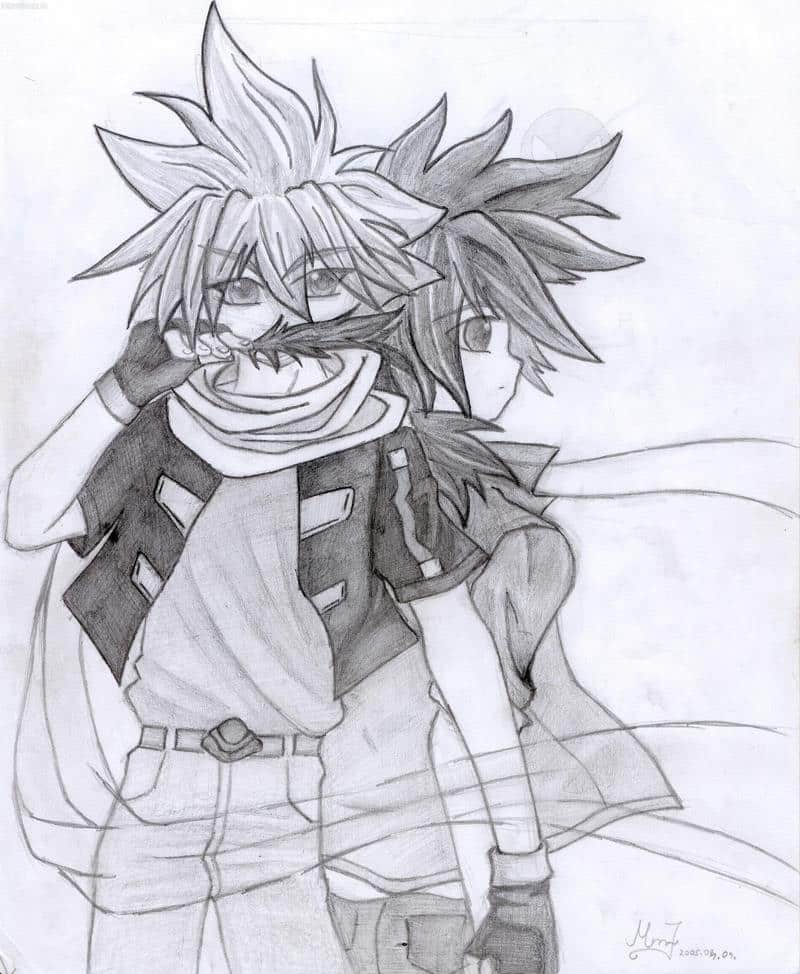 Endlich hab ich es mal geschaft ein Bild hochzuladen.^^ *sich freu* Also, das sind zwei meiner lieblings Charas aus Beyblade, Kai und Tyson. Ist mit Bleistift gezeichnet, wie viele meiner Bilder. Hatte dazu auch eine Vorlage, ist aber nicht abgepauscht!