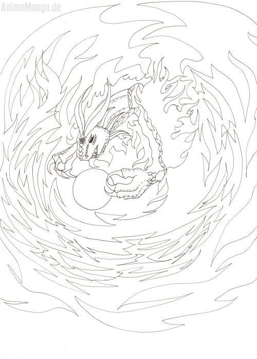 die kugel in der mitte soll eine welt darstellen die gerade von dem drachen erschaffen wird.