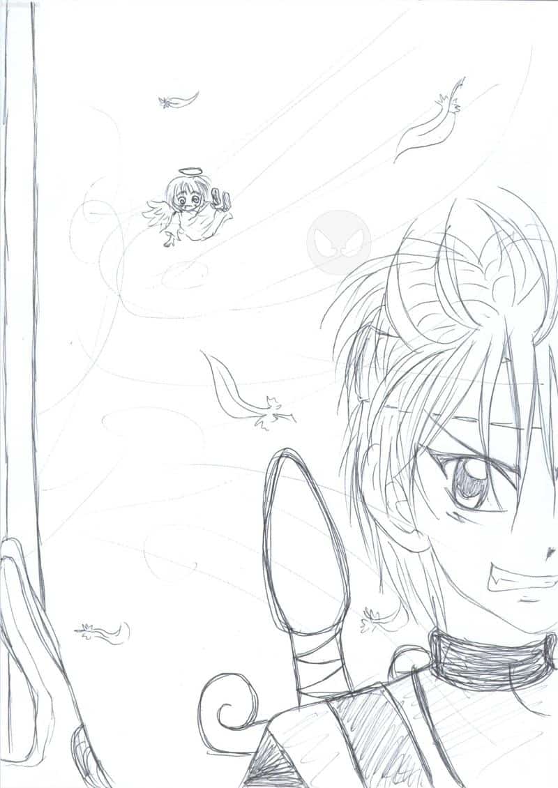 Ein Junge, dem ein kleiner Engel langsam mit seinen Moralprädigungen lässig wurde. Kurzer Hand hat er die Tür geöffnet und mit einwenig Magie einen starken Luftzug erzeugt, der den Engel weggefegt hat. :P
