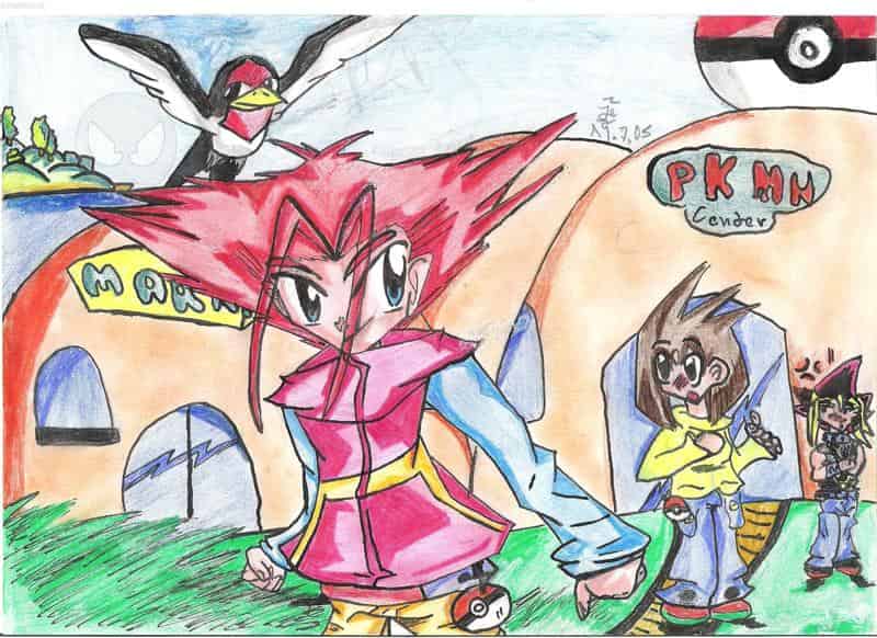 Also ich und mein Yugi gingen den fad nach lehmhöhlentown weiter und im gras auf dem weg dorthin fing yugi sich ein pikachu und ich bekam ein hydropi von prof.eich mit dem trainierte ich ein wnig und als yugi es endlich geschafft hatte das pikacu zu zähmen kamen bald in lehmhöhlentown an,dort trafen wir auf tala,wie man auf dem pic sieht weiß yugi den unterschied zwischen flirten und verliebt sein nicht er ist nämlich einer der leich eifersüchtig wird ewenn seine liebste mit anderen boys rummacht aber als ich ihm erklärte das ich nur ein riesigerfan von ihm bin meinte er nur zu mir ich gehe tränke und andere sachen im markt kaufen,in der zwischen zeit redete ihc mit tala über sein schönesaussehen und er erklärte mir das er bi einer veranstaltung in meeresfelsencity mitmache und sein schwalbini kam dann auch zurück,ich fragte ihn ob er uns eine weile begleiten wolle un der stimmte zu,als yugi zurück kam war er erst ganz empört doch dann ewr er damit einverstanden^^