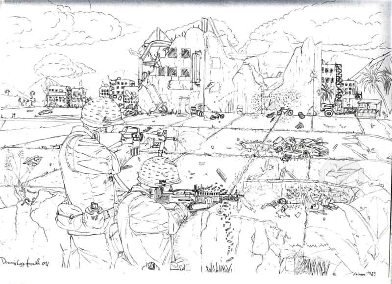 Snowtiger und MG schütze Tennessee eine vietkong stellung unter schwerembeschuss nehmen