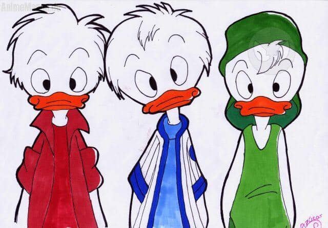 Außerdem ist mir Trick (der blaue) misslungen, Tick (der Rote) schielt leicht (oder bilde ich mir das ein >:ô) und Tracks (der grüne) Schnabel ist schlecht gezeichnet... v.v