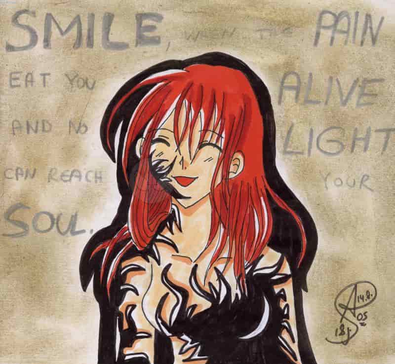 Das was da in Gold im HG steht, kann man nicht so gut lesen... also da steht: "Smile, when the Pain eat you alive and no light can reach your soul" Darum ist das girl auch von der Dunkelheit umgeben... ich hoffe, ihr versteht, was ich mit dem Pic sagen will... sonst auch nicht so tragisch... na dann... wie auch immer... lg Magic.