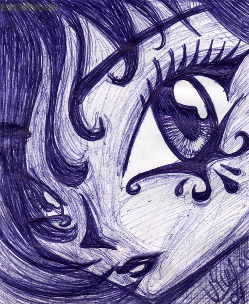 Hallo!!! Dieses kleine Werk habe ich auf einen Notizzettel gezeichnet, als ich am Bahnhof gewartet habe und hab es im Zug dann fertiggestellt... ist echt lustig, wenn man von anderen FAhrgästen eindringlich beobachtet wird beim Kuli-Kritzeln ^^° Also irgendwie bin ich voll stolz auf das Bld, ich finde ihren Blick einfach geil... naja... meinem Freund hat das so gefallen, dass ich ihm das Bild über seinen ganzen Rücken malen hab müssen XD mit Edding, er war voll happy XDDD ... ich wünsch mir Kommiehs ^^ Bussieh baba Wiggiehlein