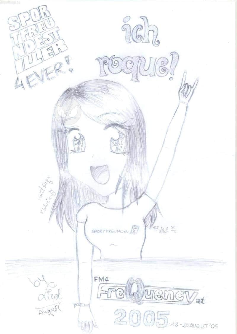 und der scanna halts voll versaut *ihn tret* vl hät ich´s dunkler scannen solln.. weil ma so wenig erkennt, njo ich hoff ganz dolli aufn paar kommis, sonst bin ich beleidigt XDDDDDDD~ ajo, ich bin eigentlich halb in da 2. reihe gestanden aba des war zu schwer zu zeichnen, hab i mich in die erste geschummelt XDDD und mein "sportfreundin"-leibal mag i auch .. aba des habi eh scho länger! und weils so geregnet hat sind wir voll im matsch versunken,.. aba egal!!! lange rede kurzer sinn: <b> des festival war einfach nur geil, und die sportis sind einfach die besten!!!!!!!!!!!!!!! freu mich scho aufs nächste konzi </b> hel des Liesl =) <img src = "http://www.clicksmilies.com/s0105/tiere/animal-smiley-085.gif"></img> <-- ich find des schaf voll goil XD *springseilspringend davonspring*