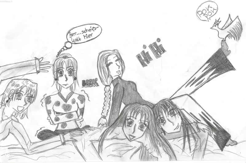 joa ´hallt ne mädchenclique......der komische vogel da auf dem fuß von dem einem mädchen da is copyright by me!! den hab ich selbst entworfen un jahaaa er hat ne kropne auf und irgendwie statt federn haare oda so..naja ich weiß selba nich ganz was dass sollte aba ich find ihn cool