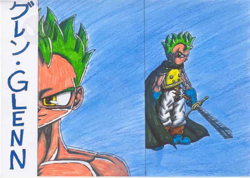 Soa...ich weiß,Glenn ist in dem Game eigentlich ein Frosch...aber ich denke,das ist es, wie er als Mensch aussehen würde. Ich weiß auch,dass es ein ending gibt, wo er ein mensch ist (im game) da hat er lange Haare..aber es gibt auch ein anime ending,wo man alles,bis aufs gesicht sehen kann....und ich finde,dass magus nit unbedingt dafür sterben muss...muss doch einfach ein "weißer" Magier (Magus war ein "schwarzer") Glenn wieder zurückverwandeln -.-