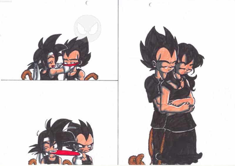 hmja,Also der Junge,der Vegeta zum lächeln zwingt (und bei dem Vegeta sich dafür rächt) heißt Son-Gotan (eine von mir erfundene Figur) und die Frau,die Vegeta knuddelt,heißt Siona (auch eine von mir erfundene Figur)