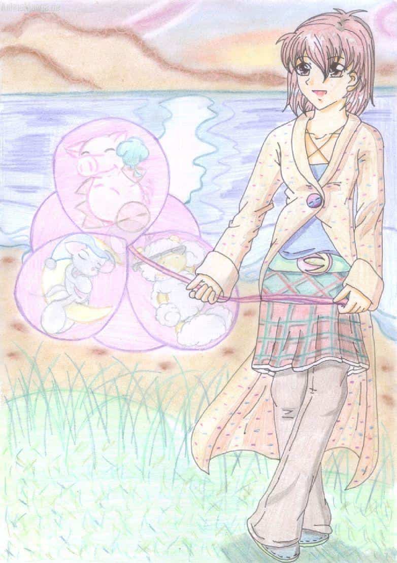 Also, ich hab das Gefühl (aber das trügt mich oft), dass der Kopf nicht ganz so groß geworden ist, wie sonst. Aber korrigiert mich ruhig. Ich weiß, die Klamotten sehen echt merkwürdig aus. Ich und mein verrückter Klamottengeschmack *gg Mittlerweile brauch ich echt nicht mehr erwähnen, dass er alles viel zu hell einspannt. Besonders das Gras ätzt einem die Augen weg. Die Figuren auf den Ballons sind leider net so gut gelungen, wies in meinem Hausaufgabenheft is *seufz Meine Figur is bestimmt mal wieder etwas pummelig. Aber ehrlich gesagt, mag ich es sowieso net, wenn die Anime-Figuren so wohl proportioniert sind. Wer sieht im waren Leben schon so aus.