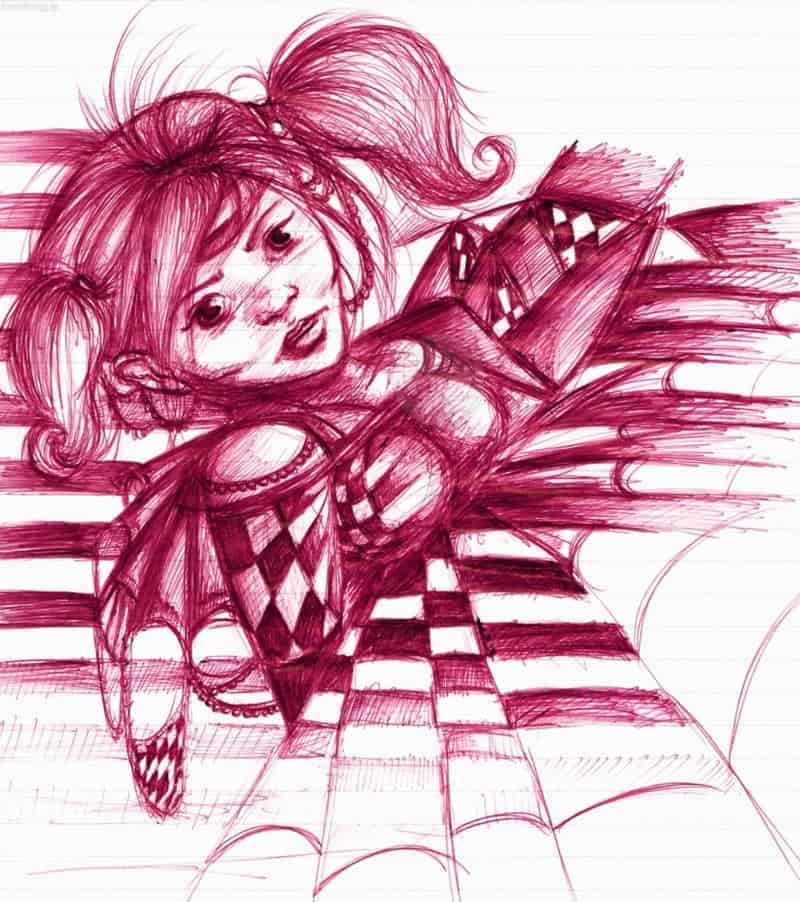 Ugh °______O das bild is total überladen und hässlich, aber ich lads trotzdem mal hoch XD“... also es ist entstanden, als ich im sommer im urlaub war. Ich hatte ca. 3 monate nichts richtiges gezeichnet und hatte son richtig gemeines krea-tief -.- und eines nachts konnte ich dann nicht schlafen, hab mir nen block geschnappt (daher sind leider noch ein paar linien drauf, ich hoff ma es iss nich so schlimm...) und wie eine irre drauf los gekrakelt – hier das „ergebnis“...^^ ich denke das thema, was wir in kunst gemacht haben, nämlich perspektive, insbesondere auch schachbretter <.< hat mir nicht gut getan...XD *drop*