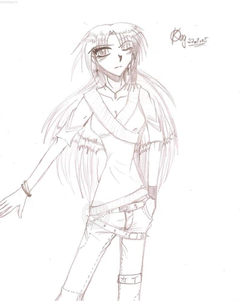 Als ob es hier nicht schon genug eigene Charas gäbe, aber ich habe inzwischen ganze.. also, es sind jedenfalls über zehn óo" XD das ist jedenfalls die Hauptperson von diesen über 10 >.> Kay Hiwatari. NEIN, das Hiwatari habe ich weder von Beyblade, noch von DNA oder sonst irgendwas, Hiwatari ist ein in Japan eigentlich recht verbreiteter Name. Und wehe mir, ihr sprecht Kay "Käy" aus >.< *fauch* ... ähm, ich weiche wieder vom Thema ab ^^" also... das is typisch ich, in letzter Zeit krieg ich keine ordentliche Colo hin.. weil meine Hautfarbe-Bunties abhanden gekommen sind >> nya, hier die Bleistiftzeichnung, an den OL's arbeite ih gerade und irgendwann im Laufe des Jahres gibts denn auch ne Colo.