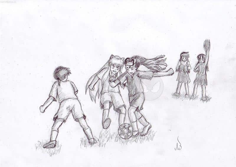 Das ist es, na ja hab sie als Kinder gezeichnet, da hinten kago und sango, ich musste die beiden so klein zeichnen deswegen ist es so ungenau ^^“