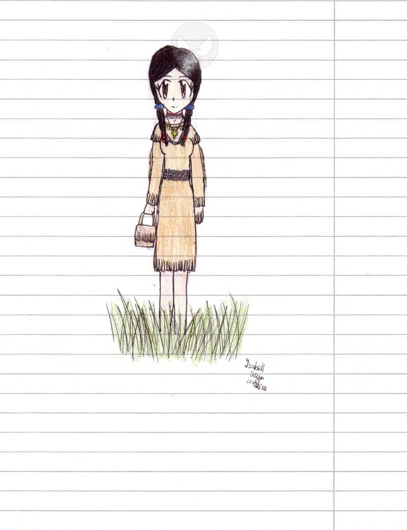 ne kleine indianerin..ich hab, bevor ich das gezeichnet hab, son buch gelesen, über shamaninnen ^^ das is zwar keine, aber ne indianerin. der körper isn bissel komisch, find ich, un die hände-wie immer- verkrüppelt. das gras is da bloß, weil ich keine füße kann ^^