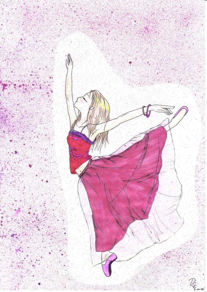 Mir persönlich gefällt das Bild nicht so. Ich kam durch einen Film auf die Idee, eine Ballerina zu zeichnen. Am Anfang war ich auch ganz begeistert von dem Bild, aber jetzt gefällt es mir nicht mehr so. Ich kann keine Hände malen. Außerdem finde ich, das irgendwas an dem Bild fehlt! Helft mir!!!