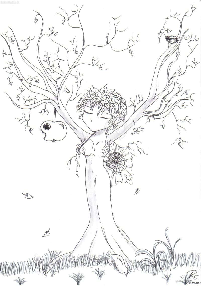 Außerdem hätte ich gar nicht gewusst, in welcher Farbe ich den Kopf machen sollte. Braun würde es vielleicht gar nicht auffallen, dass das Bild ein „Baummädchen“ darstellt. Aber wenn ihr es unbedingt bunt haben wollt, könnt ihr es auch ausdrucken und colorieren!
