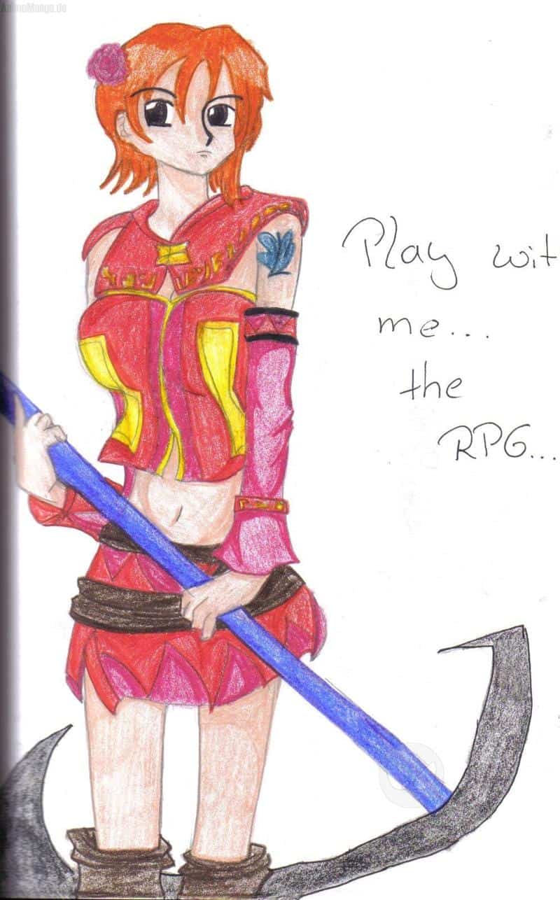 Ich hab im I-Net mal ein Pic gefunden,da war Nami mit Nico Robin zu sehen(diese habe ich aber weggelassen wegen Platzmangel...).Es trägt diesen Titel,weil der Bogen mit ihrem Stab zusammen ausschaut wie eine Sense XDXD