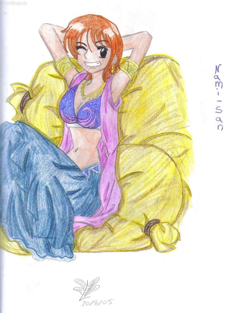 Hier ein Bild von Nami.Als Vorlage diente mir eine OP-Karte(kein Plan,aus welchem Deck XD).Ausser der Busen und die Farbe ihres Kleides(zu dunkel...)gefällts mir eigentlich ganz gut.Was sagt ihr dazu?^^