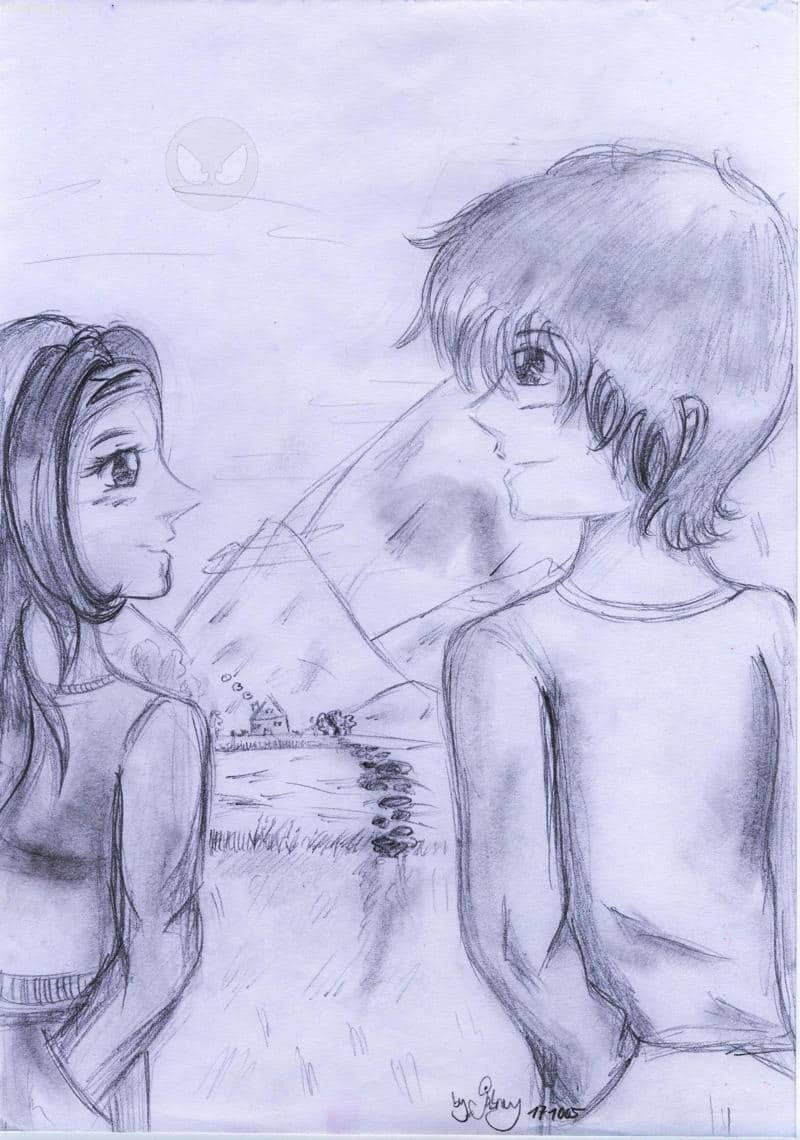 naja, und irgentwie ist der kopf des jungen zu groß..^^"und was des mim hg soll..keine ahnung.auf jedenfall war das bild so leer, also hab ich einfach noch n mädel hinzu gemalert.