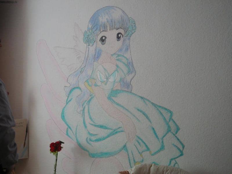 Dieses Bild von Tomoe habe ich an die Kinderzimmerwand meiner Cousine gemalt. Ich finde es echt Klasse die Bilder so groß wie möglich malen zu können.