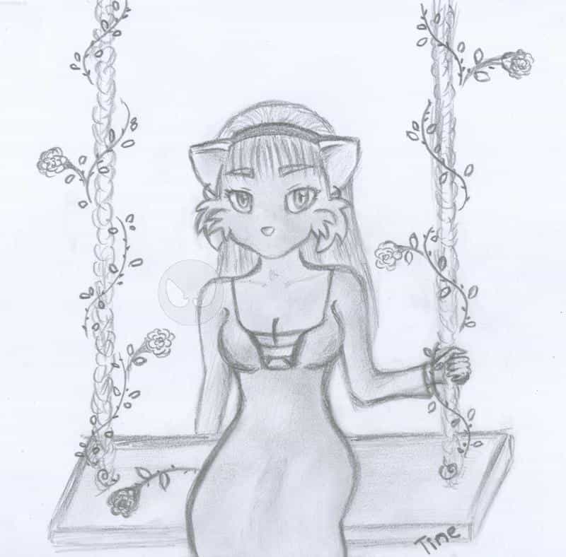 Da ich heut wegen Krankheit zuhause geblieben bin (~.~ wann hört das endlich auf??) hatte ich genug Zeit um mich mal wieder künstlerisch zu betätigen^^ Madonna gehört (wen interessierts?) und drauf los gemalt. Das kam dabei raus. Ein Catgirl was auf einer Schaukel sitzt. Ich mag das Bild irgendwie^^ Nur die Hand ~.~ ich kann keine zeichnen *flenn* egaaal muss man ja nicht drauf achten^^ Mir fällt grad auf dass das schon wieder dem stil von better days nahe kommt.. obwohl ichs lang nicht mehr gelesen hab und auch nicht wirklich beabsichtigte in diesem stil zu zeichnen.. naja egal. der stil ist einfach leicht zu zeichnen^-^ Soviel zum Bild