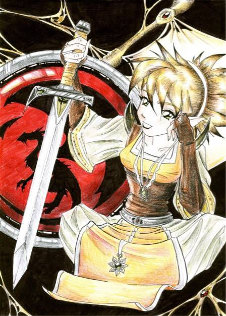 `N Mädel, dass da sitzt und ein Schwert in der Hand hält!!