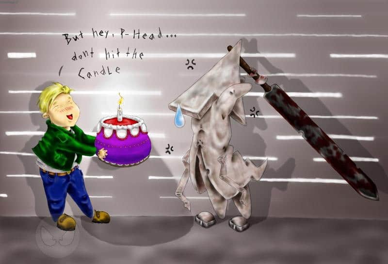 Tja, und nun ma zu dem Ding -.- *muss das sein?* ...hmm, ist ne kleine Premiere für mich, weil das das allererste Bild ist, das komplett am PC und mit nem GT entstanden ist..es gab dazu nichts auf Papeir und ich hab auch keinen Bleistift dafür anfassen müssen... tja, was man natürlich alles sieht *heul*... hmmm, ok, die Zeichnungen haben mit dem GT echt erstaunlich gut hingehauen...für´s erste mal... aber dann die Colo -.- .. man könnte meinen ich fresse Farben und scheiße quitschbunte Regenbogen oder so...hmm, da hilft auch kein abdunkeln mehr... Gott sei dank fällt das bei dieser Chibifizirung der Silent Hill 2 Charaktere net so auf ^^...hmm, ach ja, das sind übrigens James Sunderland, seines Zeichens Hauptfigur in eben jenem Spiel, das ich für mich zu einem der Besten überhaupt zähle *nur Teil 3 is besser XD*...und sein ewiglicher Widersacher, der Pyramid Head, kurz P-Head ^^... hmmm, wer das Spiel kennt wird sicher auch wissen, das der alte Spitzkopf das nervigste stück Dämonenmüll ist, seit Daniel Kübelböck...