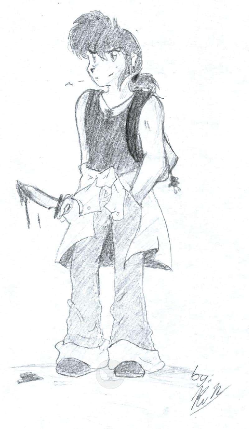 hm... nunja... ein Versuch mit Bleistift. Ich zeichne nie vor, deshalb bin ich damit ziemlich ungeübt, verzeiht mir! Fall sisch irgendjemand beschwert, wiel die Seite von Rukas Ohrring gewechselt hat: hat sie auch xb mein rechtes Ohrloch is zugewachsen, also hab ich mir links eins stechen lassen und eine solche Veränderung muss dann natürlich auch Ruka mitmachen *fg* ich denk ja nich dran, alleine zu "leiden".