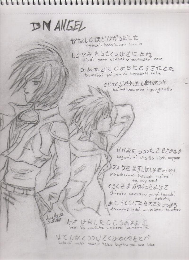 Text: Kanashii hodo hikari daschita, shiroi yami kirisaku tsubasani nare, tsumetai taiyou ni terasare teta, kainarosareta jiyuu ga atta, kagami ni utsutta kiseki no yuru, mosoku wo hazushi hajime ta my soul, shiroku somaru yami tsuzuki nukete, atarashii jidai wo kizami tsuzukero, taki na nashita kokoro no mama ni, hateshi naku tsuzui teku byaku ya wo tobe = (deutsch) Ein verzweifeltes Licht, wird zu Flügeln die, die weise Dunkelheit durchtrennen, damit die Kalte Sonne herab scheint, ich hatte nur wenig Freiheit, Die geheimnissvolle Nacht zeigt sich im Spiegel, sie begann meine Maske abzulegen . . meine Seele, Entflieh der weissen Dunkelheit, lass uns weiter eine neue Zeit schaffen, solange der Weg zu meinem Herzen frei ist fliege ich weiter den endlosen Flug unter der Mitternachtssonne. Bitte Kommis und benoten