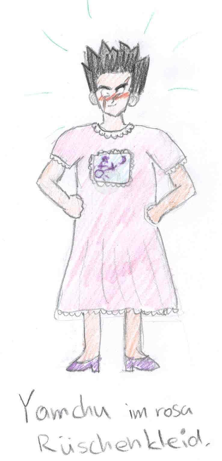 Nachdem DocSon in der FF "special zu Heftchenklau" etwas von Yamchu im rosa Rüschenkleid geschrieben hat, musste ich es sofort zeichnen, ich weiß, ist nicht so gut, hatte ja auch keine Vorlage sondern einfach ausm Kopf gezeichnet also seid nicht so streng...
