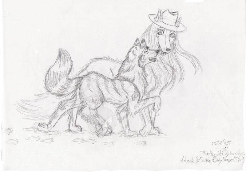 da sie auch in meiner geschichte mitspielen wird (was wäre eine self-insert geschichte OHNE sheepsz?!? Oo;), musste ich sie auch als vieh darstellen. nun, als erstes habe ich da natürlich an ein SCHAF gedacht, aber das kann ich dir ja nicht antun, ne? ^^ du geisterst schon auf zu vielen blättern in meinen heften als schaf rum, jetzt sollte was neues her. erster, tigerlogischer gedanke: ein wolf! genau! und da ist sie nun, von meinem dummen, hippeligen tigerkörper verdeckt, aber wegen des größenunterschieds noch gut zu erkennen (hm, ketzt denken bestimmt alle, dass ich mega klein bin... stimmt doch gar nicht, ihr seid nur alle so groß! das häschen beispielsweise ist viel kleiner als ich... übrigens, sheepsz, wer hat es dir erlaubt, größer als ICH zu werden??? Òó; fühlst du dich jetzt toll, oder was??? *feix* XD). eh, ja.... wo war ich? shespszhut existiert übrigens auch in echt, sie trägt ihn IMMEr, so wie ich auch immer meinen geliebten hut getragen habe, bis er verschwunden ist... *ne trauersekunde für den vermissten hut einleg* nja, ich schwall wieder... hab noch mehr bilder mit sheepsz, die hier natürlich auch reinkommen. wir machen zusammen so viel blödsinn, das MUSS ich einfach alles festhalten! ^^ hey, bald hab ich die schallmwuer durchbrochen! die magische HUNDERt rückt immer näher!!!! *aufgeregt hin und herzappel*